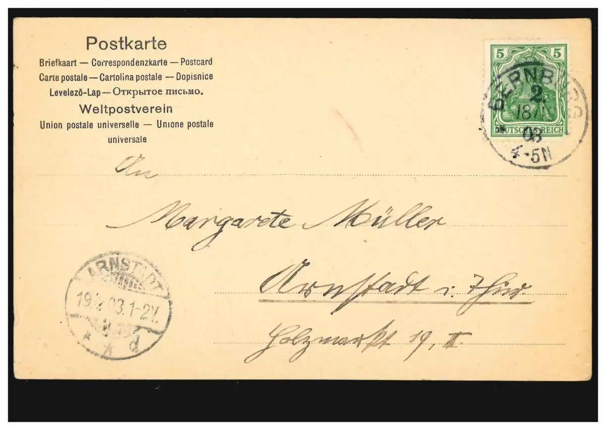en BERNBURG 2 - 18.12.1903 selon ARNSTADT 19.12.03 Vérification: original Référence produit: 00000000042074