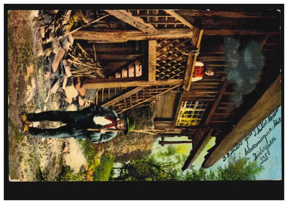 AK Agriculture: Ferme - paysan avec fourche à foin, SCHWENNINGEN 23.3.1908