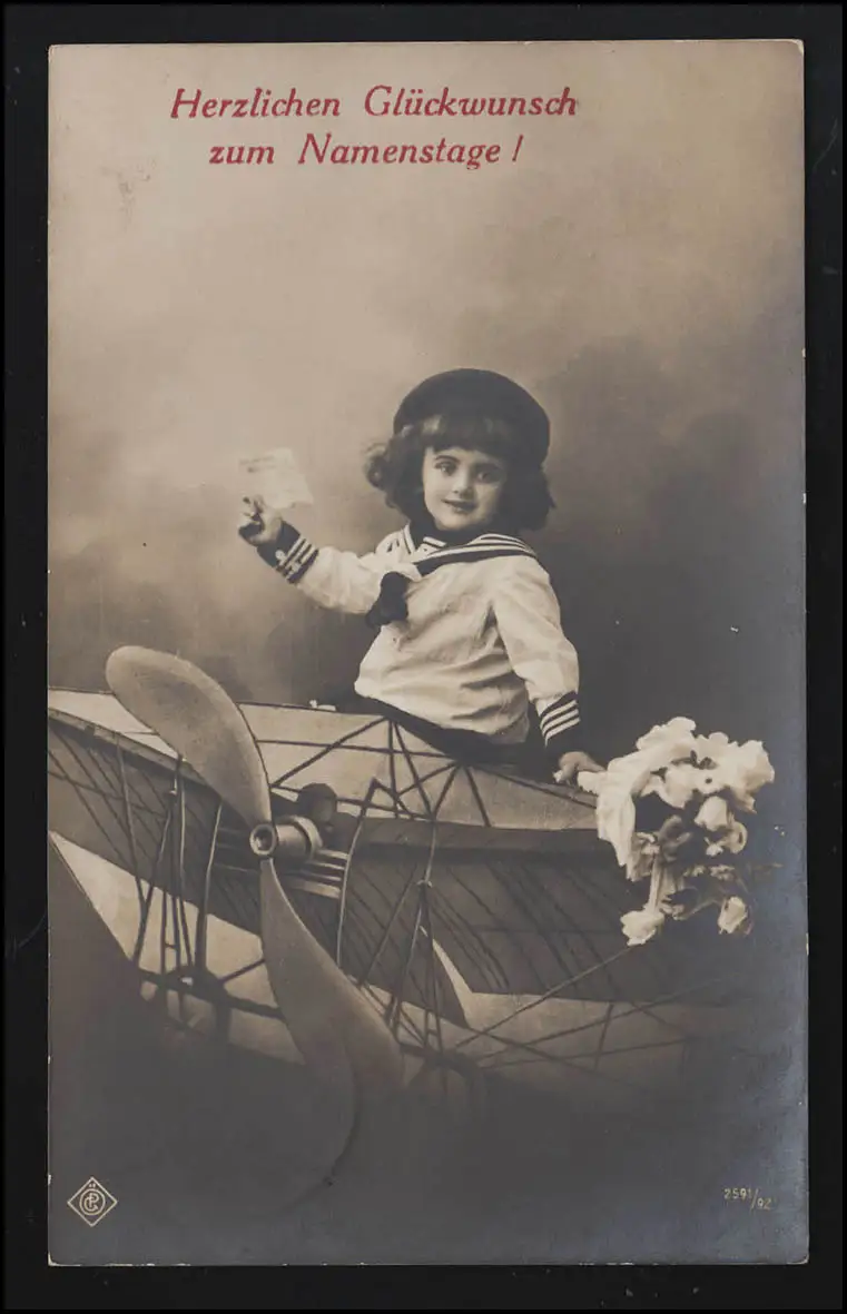 AK Air Enfant Costume d'avion Marine Fleurs Félicitations, MUNICH 1911