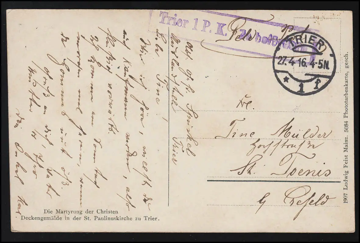 AK Allemagne Peinture de plafond Martyrs St. Paulinuskirche, Feldpost TRIER 27.4.16