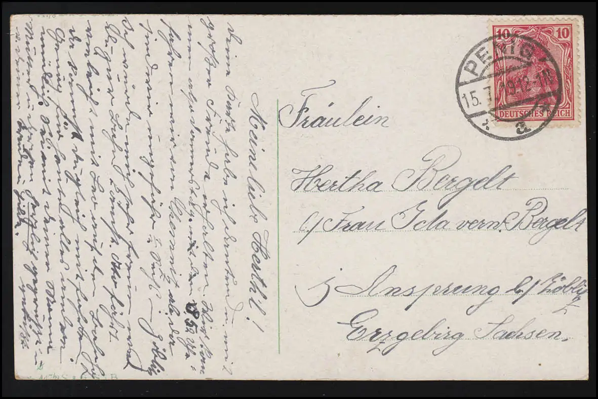 AK Amour, "Je pense à toi!", Lettre de colombe Margeriten Autrus, PENIG 15.7.1919