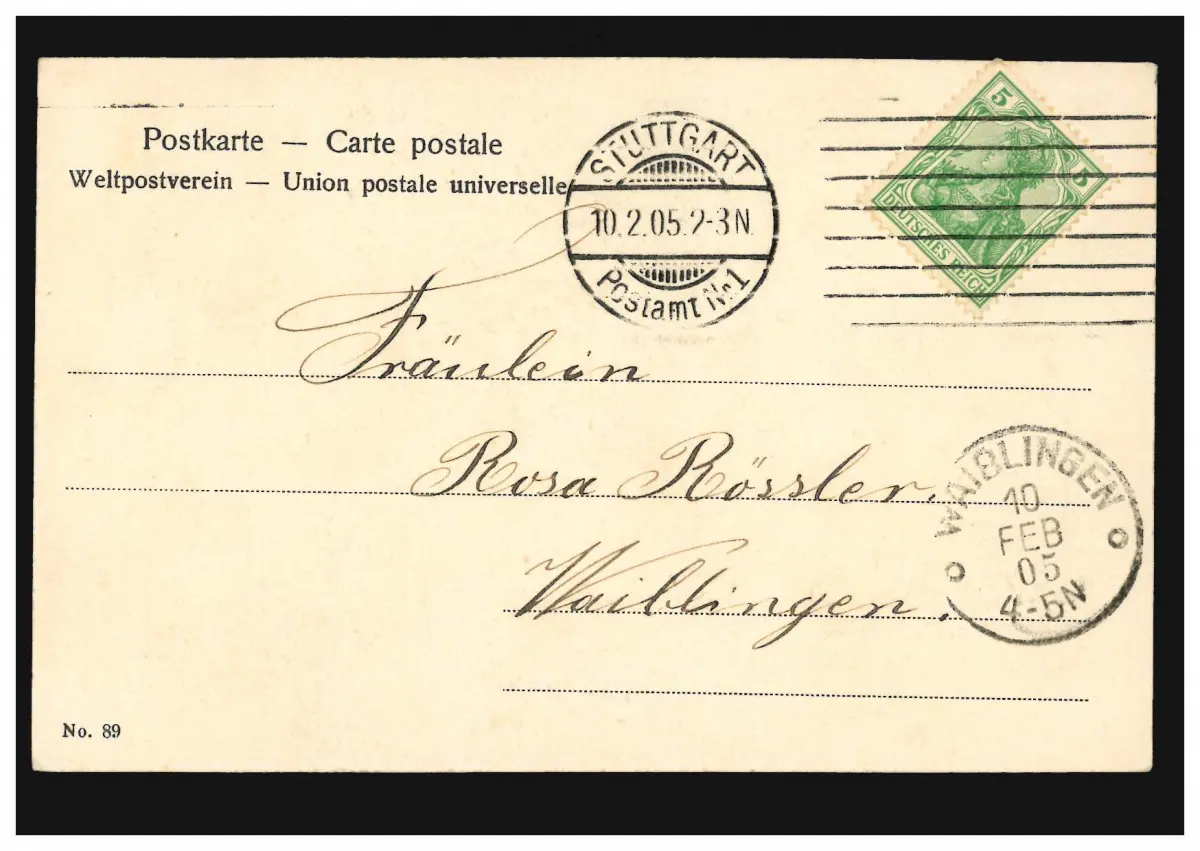 Tampon d'arrivée WAIBLINGEN 10.2.1905 Vérification: original Référence produit: 00000000037908