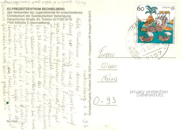 Althuette_Wuerttemberg Fliegeraufnahme EC-Freizeitzentrum Sechselberg Althuette Wuerttemberg postalisch gelaufen 1993 Erhaltung siehe scans [LiesaD40] LiesID40