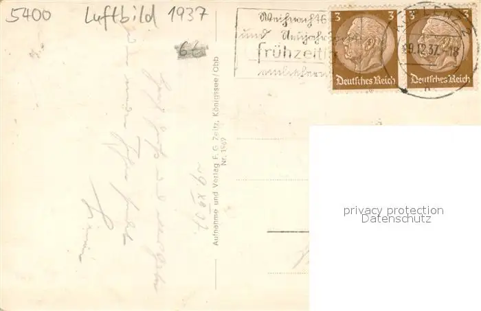Koblenz__Rhein Deutsches Eck postalisch gelaufen 1937 Fliegeraufnahme Erhaltung siehe scans [WerneD78] Fliegeraufnahme WernPID7