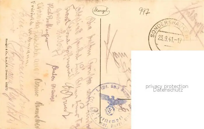 73794860 Sondershausen_Thueringen Teilansicht mit Kirche Luftkurort Feldpost Sondershausen Thueringen postalisch gelaufen 1941 Erhaltung siehe scans [FriedD77] [Frierer ]