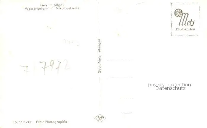 73794861 Isny_Allgaeu Wassertorturm mit Nikolauskirche Isny Allgaeu postalisch nicht gelaufen 1943 Erhaltung siehe scans [FriedD77] [Frierer ]