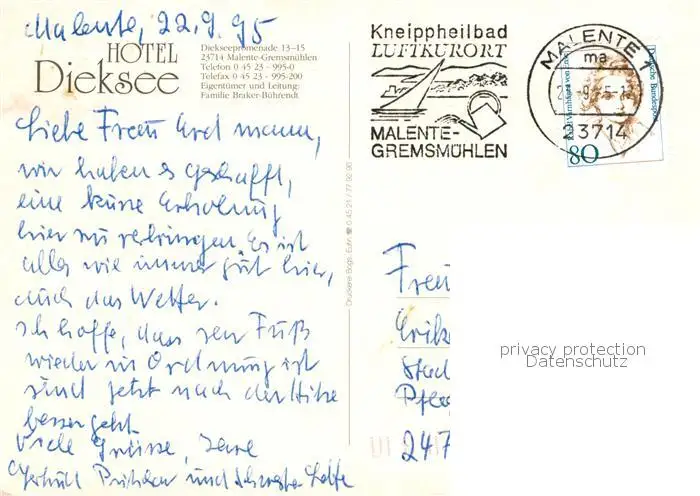 73796001 Malente-Gremsmuehlen Hotel Dieksee Malente-Gremsmuehlen postalisch gelaufen 1995 Erhaltung siehe scans [WerneD78] [WernPID7 ]