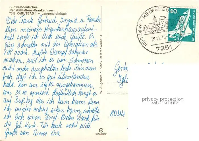 73796223 Langensteinbach_Karlsbad Rehabilitations Krankenhaus Langensteinbach_Karlsbad postalisch gelaufen 1978 Erhaltung siehe scans [WerneD78] [WernPID7 ]