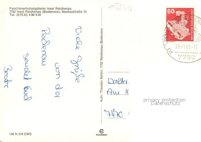 73796474 Insel_Reichenau_Bodensee Familienerholungsheim postalisch gelaufen nach 1965 Erhaltung siehe scans [WerneD78] [WernPID7 ]