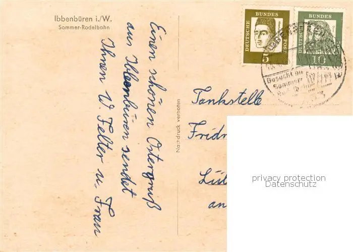 73796500 Ibbenbueren Sommerrodelbahn Ibbenbueren postalisch gelaufen 1965 Erhaltung siehe scans [WerneD78] [WernPID7 ]