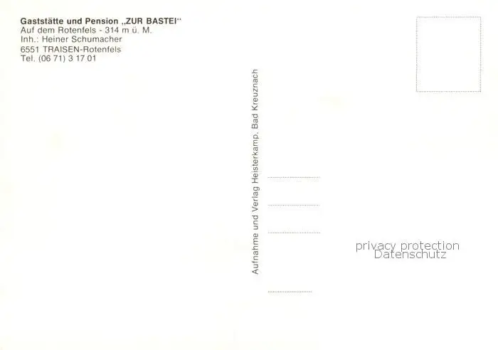 73796651 Bad_Kreuznach Gaststaette Pension Zur Bastei Der Rotenfels Bad_Kreuznach postalisch nicht gelaufen nach 1965 Erhaltung siehe scans [WerneD78] [WernPID7 ]