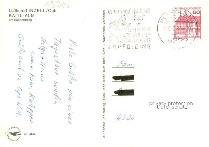 73796807 Inzell Kaitl Alm am Rauschberg Inzell postalisch gelaufen 1983 Erhaltung siehe scans [WerneD78] [WernPID7 ]