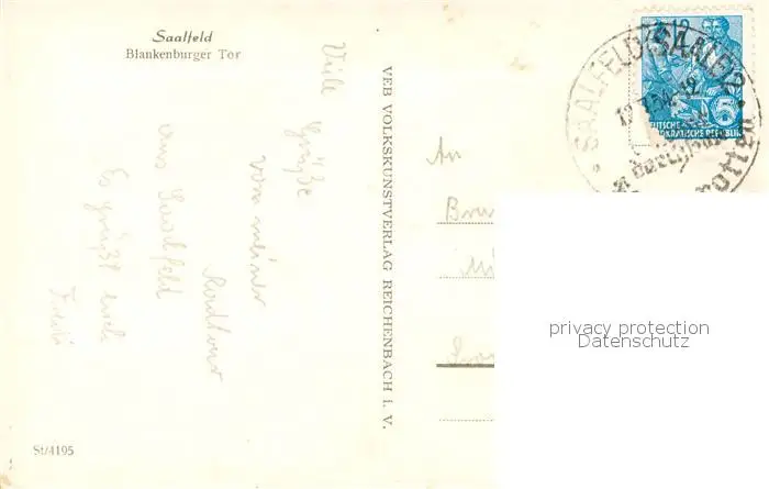 73796967 Saalfeld_Saale Blankenburger Tor Saalfeld_Saale postalisch gelaufen 1954 Erhaltung siehe scans [FriedD77] [Frierer ]