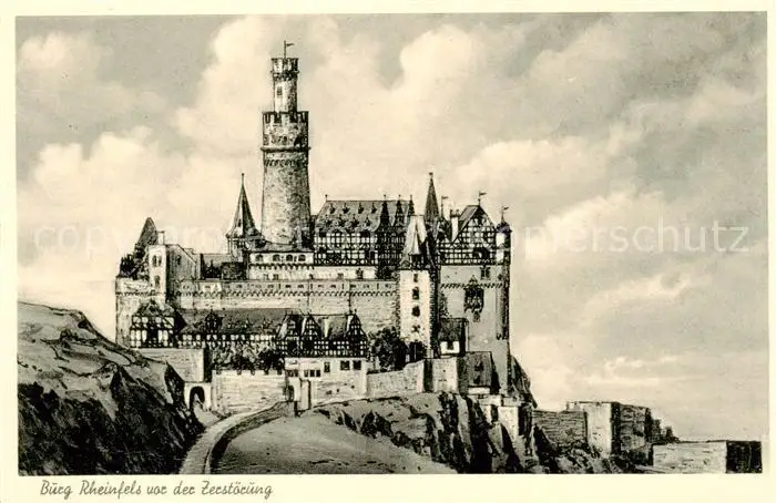 73796981 Sankt_Goar Burg Rheinfels vor der Zerstoerung 13. Jhdt. Graf von Katzenellenbogen Kuenstlerkarte postalisch nicht gelaufen 1921-1965 Erhaltung siehe scans [FriedD77] [Frierer ]