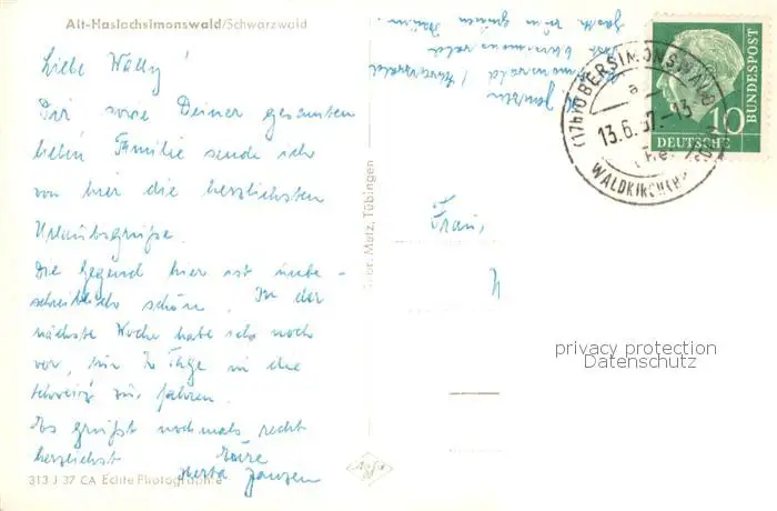 73797363 Obersimonswald Alt Haslach Fliegeraufnahme Obersimonswald postalisch gelaufen 1957 Erhaltung siehe scans [WerneD78] [WernPID7 ]