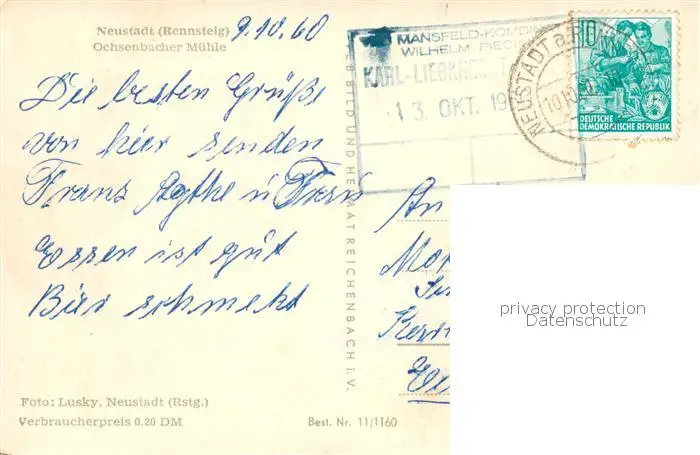 73797374 Neustadt_Rennsteig Ochsenbacher Muehle Neustadt_Rennsteig postalisch gelaufen 1960 Erhaltung siehe scans [WerneD78] [WernPID7 ]