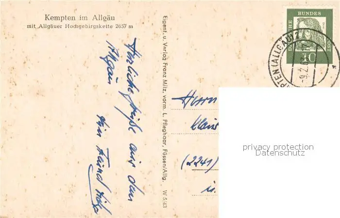 73797629 Kempten_Allgaeu mit Allgaeuer Hochgebirgskette Kempten Allgaeu postalisch gelaufen 1962 Erhaltung siehe scans [WerneD78] [WernPID7 ]