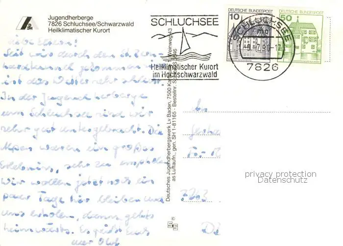 73798035 Schluchsee Jugendherberge Fliegeraufnahme Schluchsee postalisch gelaufen 1990 Erhaltung siehe scans [WerneD78] [WernPID7 ]