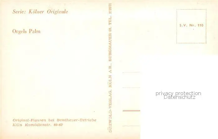 73799705 Koeln__Rhein Orgels Palm Koelner Original postalisch nicht gelaufen 1921-1965 Erhaltung siehe scans [WerneD78] [WernPID7 ]