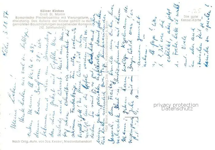 73800289 Koeln__Rhein Gross St Martin Romanische Pfeilerbasilika postalisch nicht gelaufen 1957 Erhaltung siehe scans [WerneD78] [WernPID7 ]