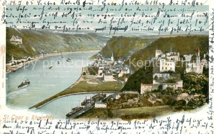 73800589 St_Goar_Rhein mit Rheinfels postalisch gelaufen 1906 Erhaltung siehe scans [WerneD78] [WernPID7 ]