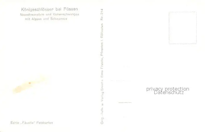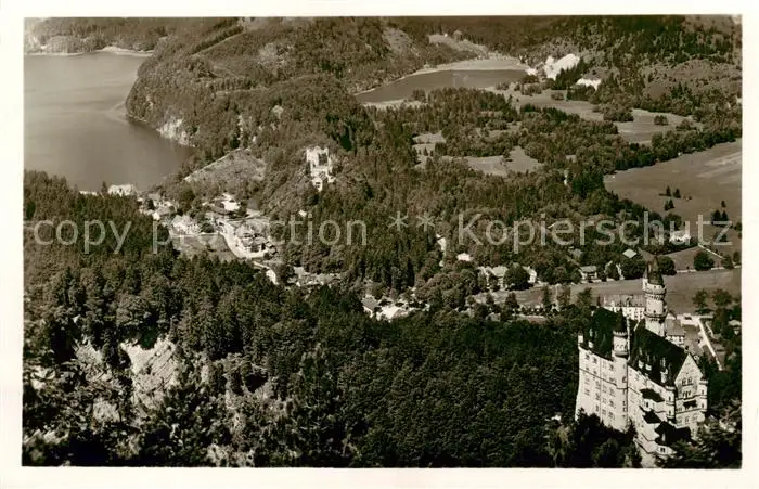 73800745 Fuessen_Allgaeu Koenigsschloesser Neuschwanstein und Hohenschwangau mit Alpsee und Schwansee Fliegeraufnahme Fuessen Allgaeu postalisch nicht gelaufen 1921-1965 Erhaltung siehe scans [WerneD78] [WernPID7 ]