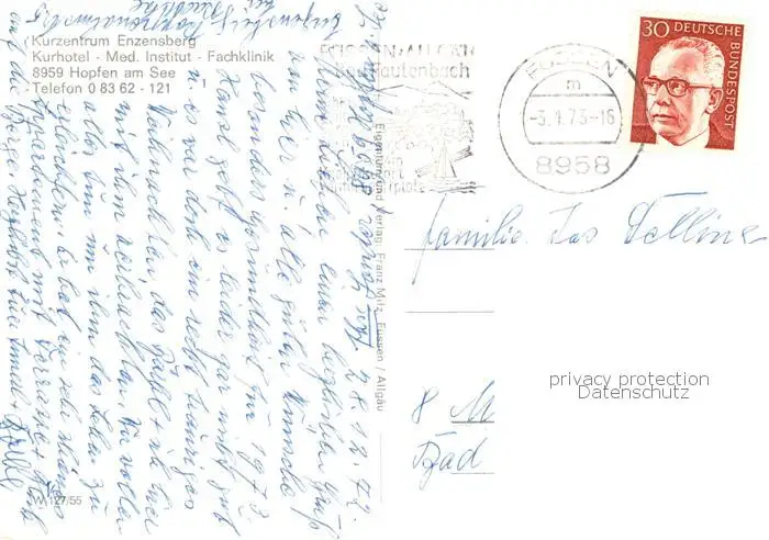 73800903 Hopfen_See Kurzentrum Enzensberg Kurhotel Fachklinik Hopfen_See postalisch gelaufen 1973 Erhaltung siehe scans [WerneD78] [WernPID7 ]