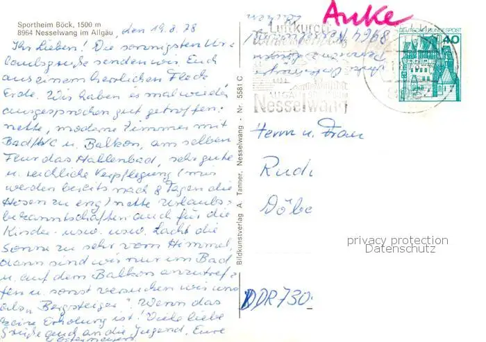 73800922 Nesselwang Sportheim Boeck Allgaeuer Alpenblick Nesselwang postalisch gelaufen 1978 Erhaltung siehe scans [WerneD78] [WernPID7 ]