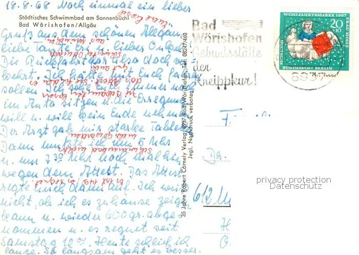 73800957 Bad_Woerishofen Staedt Schwimmbad am Sonnenbuechl Bad_Woerishofen postalisch gelaufen 1968 Fliegeraufnahme Erhaltung siehe scans [WerneD78] Fliegeraufnahme[WernPID7 ]