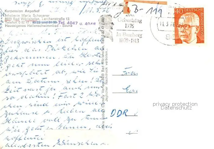 73800981 Bad_Woerishofen Kurpension Angerhof Bad_Woerishofen postalisch gelaufen 1976 Erhaltung siehe scans [WerneD78] [WernPID7 ]