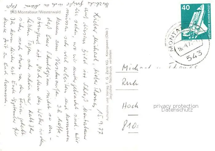 73801089 Montabaur_Westerwald Schloss Stadtansicht Montabaur_Westerwald postalisch gelaufen 1977 Erhaltung siehe scans [WerneD78] [WernPID7 ]