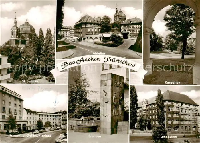 AK / Ansichtskarte 73801149 Burtscheid_Aachen St Johann Abteitor Kurgarten Prinzen und Goldmuehlenbad Brunnen Landesbad Burtscheid Aachen