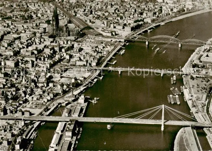 AK / Ansichtskarte 73801211 Koeln__Rhein Severinbruecke Deutzer Bruecke Hohenzollernbruecke und Dom