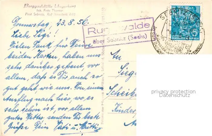 73801414 Sebnitz Berggaststaette Ungerberg Sebnitz postalisch gelaufen 1956 Erhaltung siehe scans [WerneD78] [WernPID7 ]