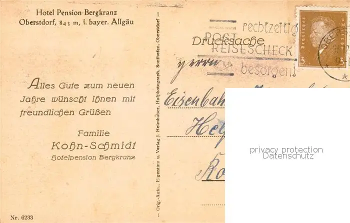 73801435 Oberstdorf Hotel Pension Bergkranz Oberstdorf postalisch gelaufen 1930 Erhaltung siehe scans [WerneD78] [WernPID7 ]