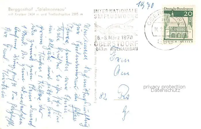 73801455 Spielmannsau_Oberstdorf Berggasthof Spielmannsau mit Kratzer und Trettachspitze postalisch gelaufen 1970 Erhaltung siehe scans [WerneD78] [WernPID7 ]