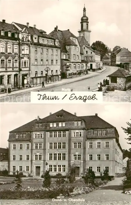 AK / Ansichtskarte 73801510 Thum_Erzgebirge Markt Grund und Oberschule Thum Erzgebirge