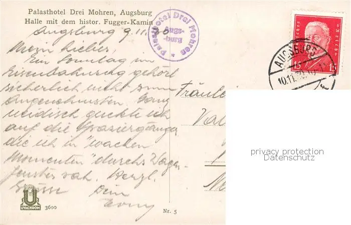 73801526 Augsburg Palasthotel Drei Mohren Halle mit historischem Fugger-Kamin Augsburg postalisch gelaufen 1930 Erhaltung siehe scans [FriedD77] [Frierer ]