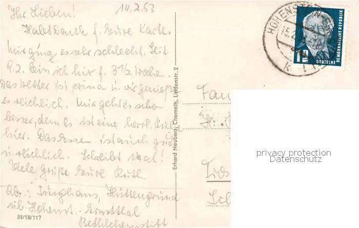 73801595 Hohenstein-Ernstthal Bethlehemstift Hohenstein-Ernstthal postalisch gelaufen 1953 Erhaltung siehe scans [WerneD78] [WernPID7 ]