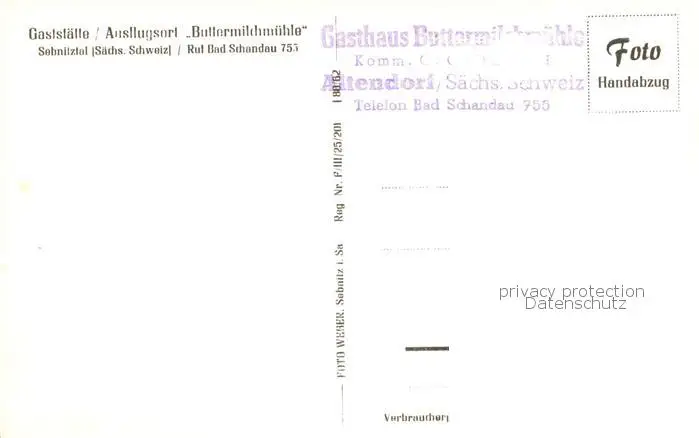 73801607 Bad_Schandau Gaststaette Buttermilchmuehle im Sebnitztal Bad_Schandau postalisch nicht gelaufen 1921-1965 Erhaltung siehe scans [WerneD78] [WernPID7 ]