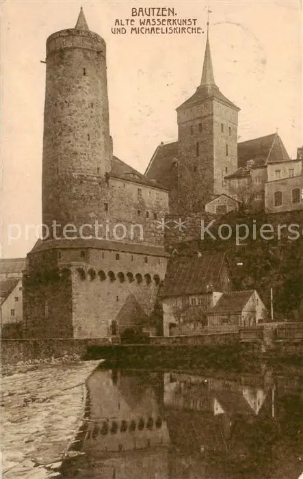 AK / Ansichtskarte 73801627 Bautzen Alte Wasserkunst und Michaeliskirche Bautzen
