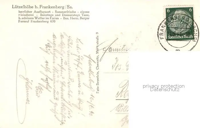 73801646 Frankenberg_Sachsen Luetzelhoehe Gartenterrasse Teilansichten Frankenberg Sachsen postalisch gelaufen 1941 Erhaltung siehe scans [WerneD78] [WernPID7 ]