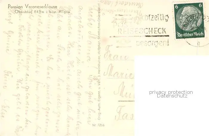 73801698 Oberstdorf Pension Veroneserklause Oberstdorf postalisch gelaufen 1921-1965 Erhaltung siehe scans [FriedD77] [Frierer ]