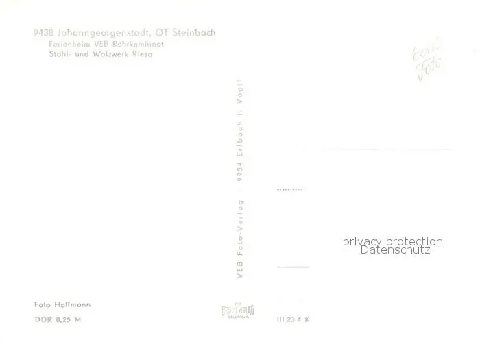 73801732 Steinbach__Johanngeorgenstadt Ferienheim VEB Ruhrkombinat Riesa postalisch nicht gelaufen nach 1965 Erhaltung siehe scans [WerneD78] [WernPID7 ]