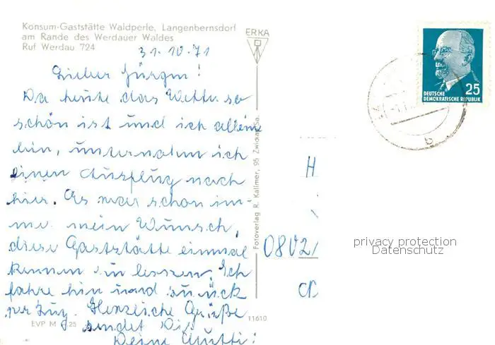 73801762 Langenbernsdorf Konsum Gaststaette Waldperle Gastraeume Flugzeug Langenbernsdorf postalisch gelaufen 1971 Erhaltung siehe scans [WerneD78] [WernPID7 ]