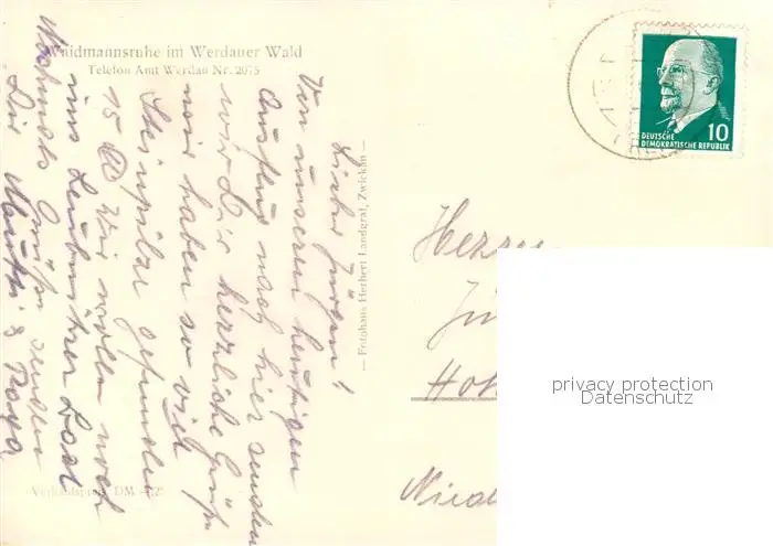 73801772 Werdau_Sachsen Waidmannsruhe im Werdauer Wald Werdau Sachsen postalisch gelaufen nach 1965 Erhaltung siehe scans [WerneD78] [WernPID7 ]