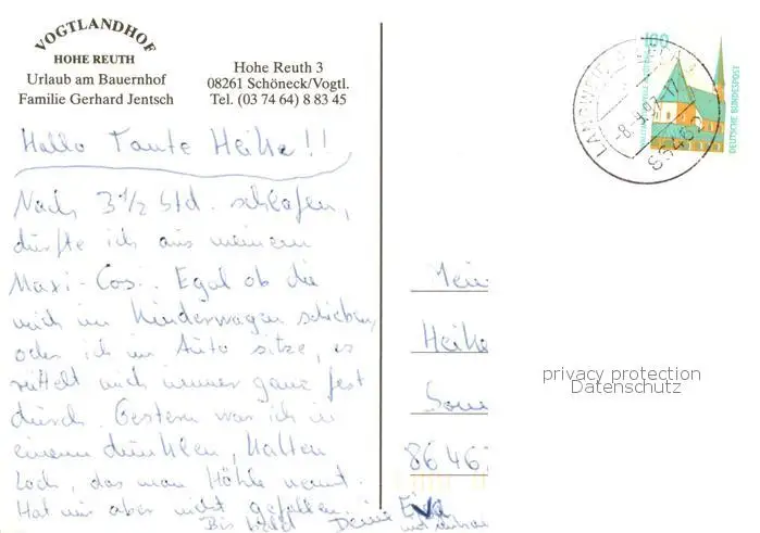 73801789 Schoeneck_Vogtland Vogtlandhof Hohe Reuth Schoeneck_Vogtland postalisch gelaufen 1997 Fliegeraufnahme Erhaltung siehe scans [WerneD78] Fliegeraufnahme[WernPID7 ]
