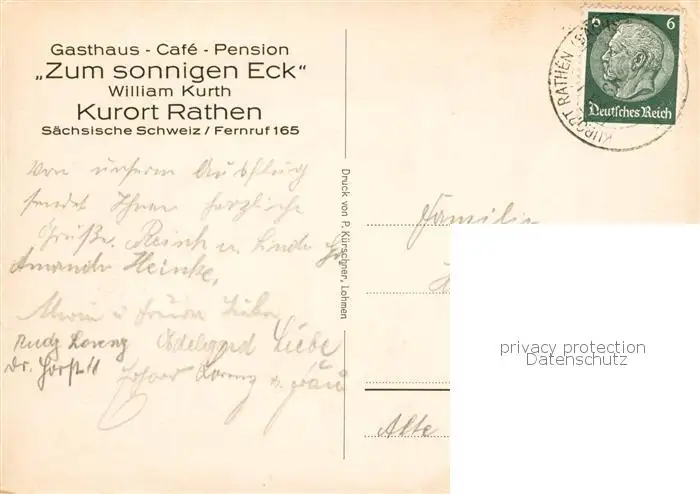 73801824 Rathen_Saechsische Schweiz Gasthaus Cafe Zum sonnigen Eck Rathen Saechsische Schweiz postalisch gelaufen 1921-1965 Erhaltung siehe scans [WerneD78] [WernPID7 ]
