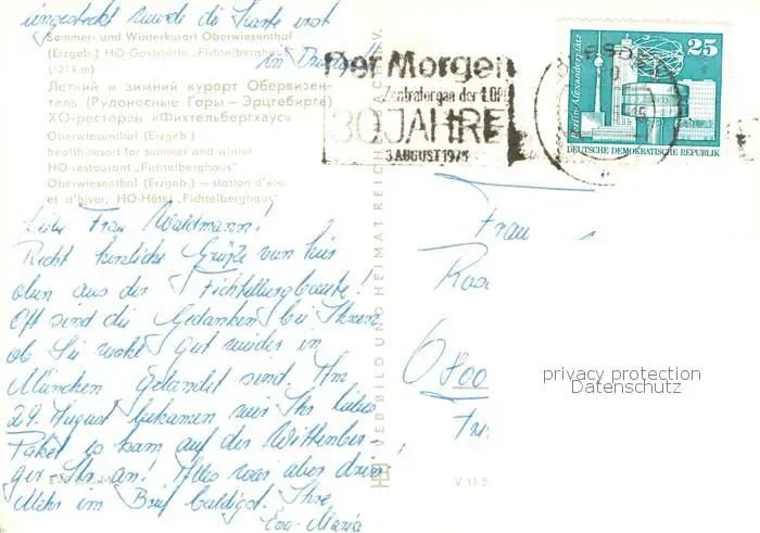 73801826 Oberwiesenthal_Erzgebirge HO Gaststaette Fichtelberghaus Grillrestaurant Salon Oberwiesenthal Erzgebirge postalisch gelaufen nach 1965 Erhaltung siehe scans [WerneD78] [WernPID7 ]