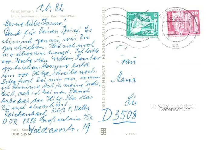 73801837 Grossenhain_Sachsen Dianabrunnen auf dem Karl Marx Platz Grossenhain Sachsen postalisch gelaufen 1982 Erhaltung siehe scans [WerneD78] [WernPID7 ]